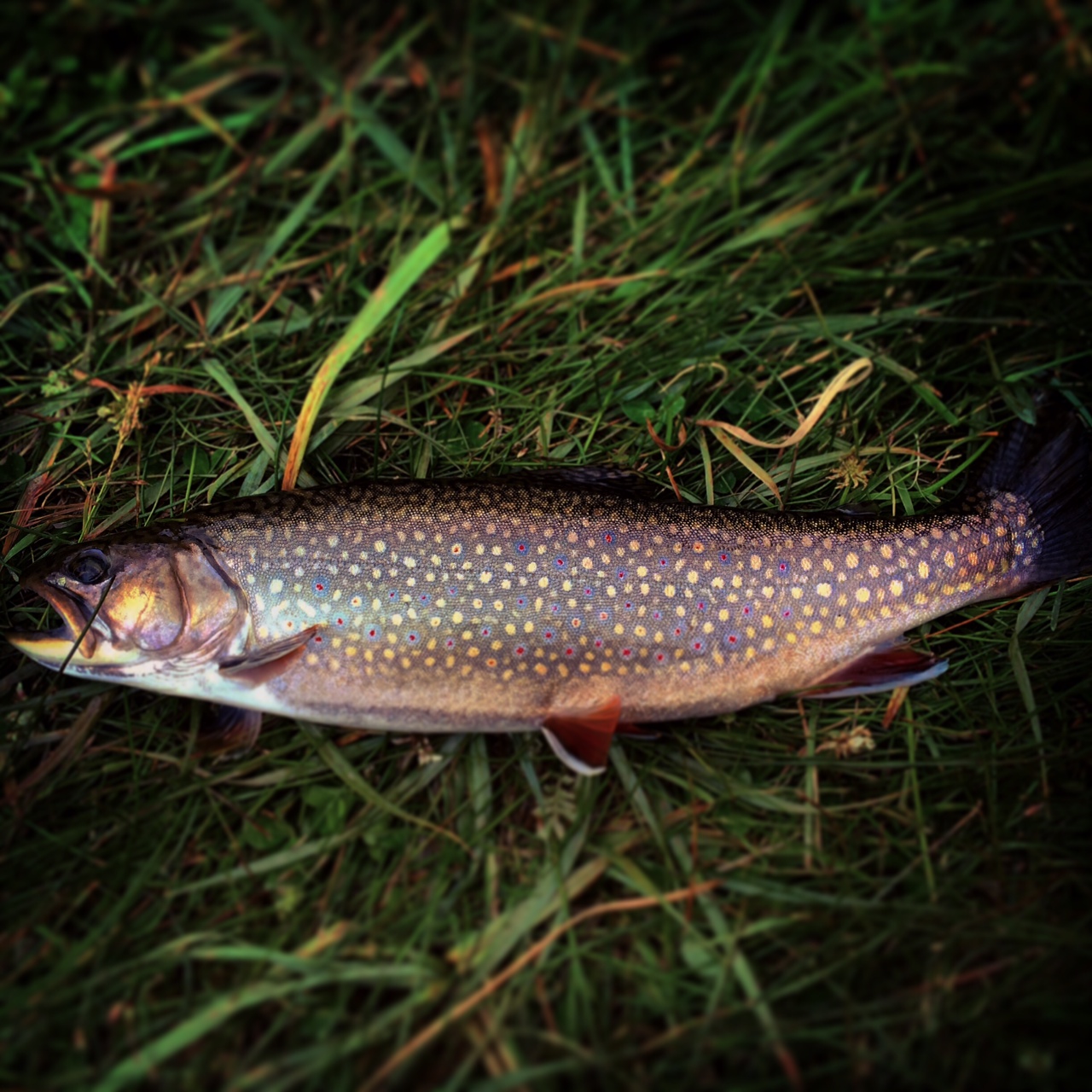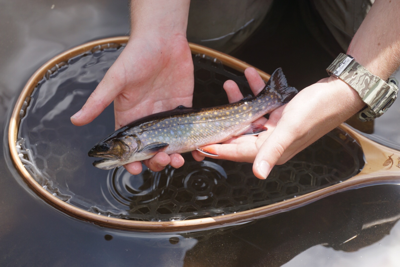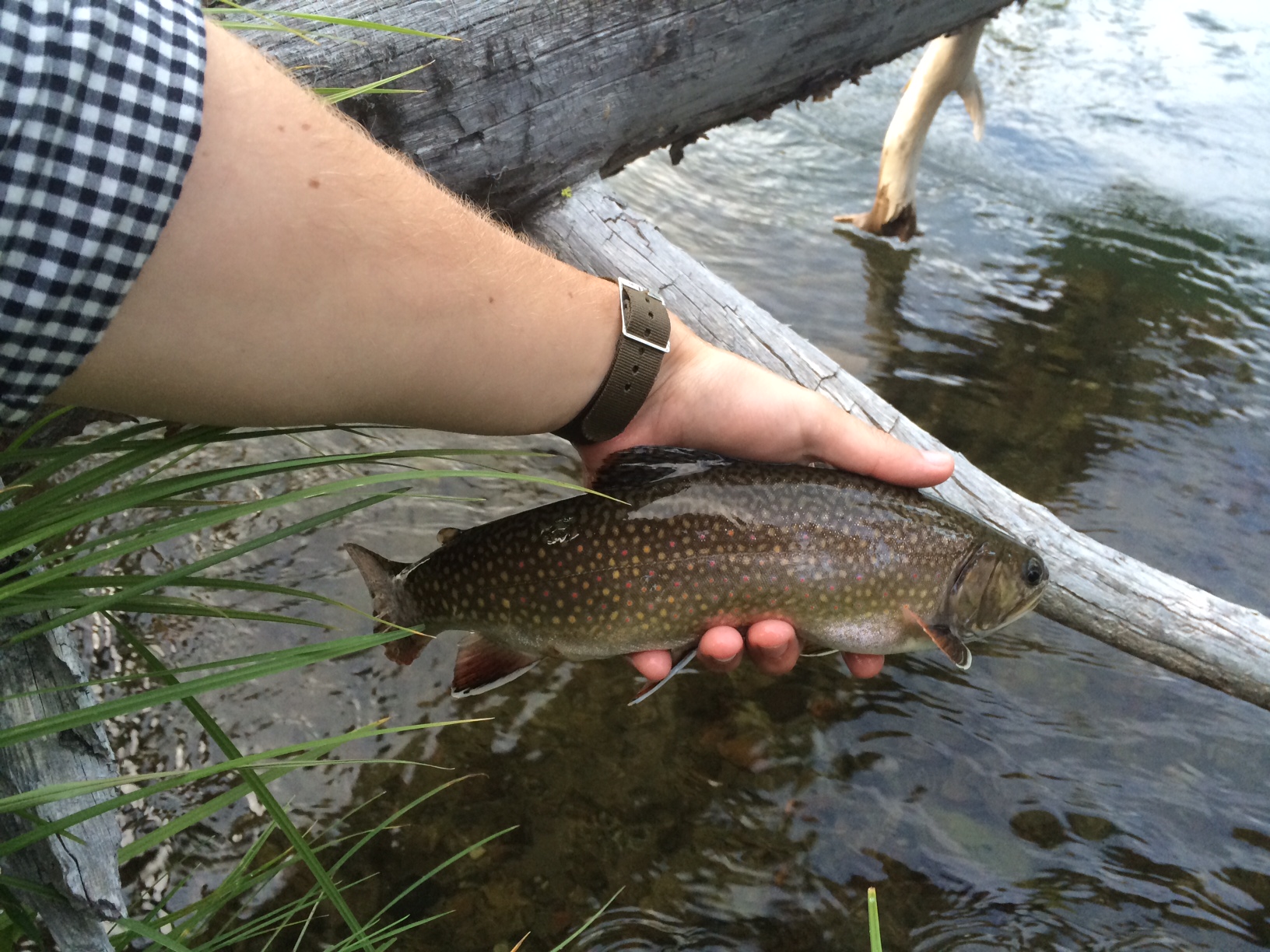 We made our way back to the river as soon as we say daylight. We made our way to one of the runs that seemed to be holding a decent amount of large brook trout. I stuck with my hares ear/sparrow dropper as it was producing extremely well for me the first day, and I wasn’t disappointed. I landed a nice healthy brook trout at the location we moved to down stream on my first few casts there of the morning. An absolutely gorgeous fish: