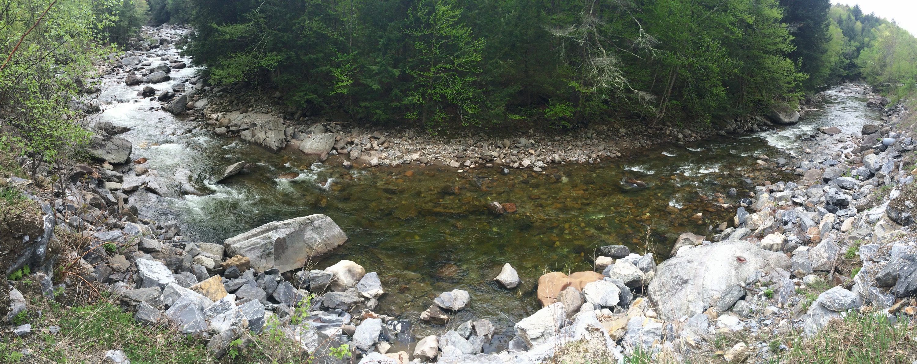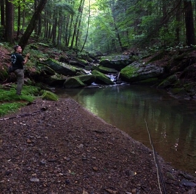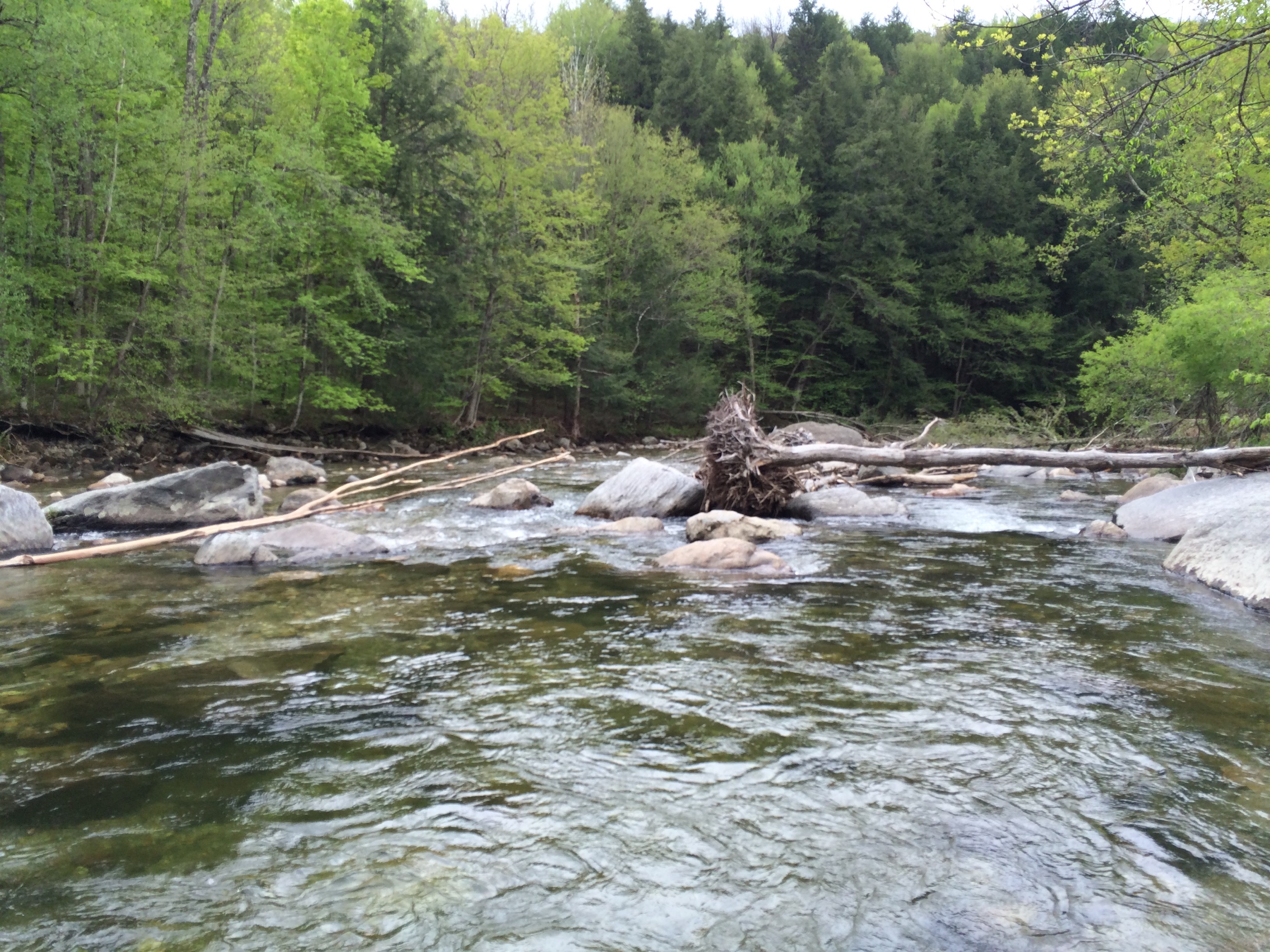 When we were within 5 minutes of the pin I dropped on google maps, I wasn’t noticing evidence that there was a river even remotely close to us. I’d be lying if I told you I was confident in my navigational skills at that point, but sure enough we pulled up on a bridge, overlooking a narrow access point for the river. My oh my, was it beautiful. I’ve spent a lot of my time on NY streams, spring brooks/creeks, and rivers. Out of all the places I’ve fished, I’ve never seen something quite as wonderful.