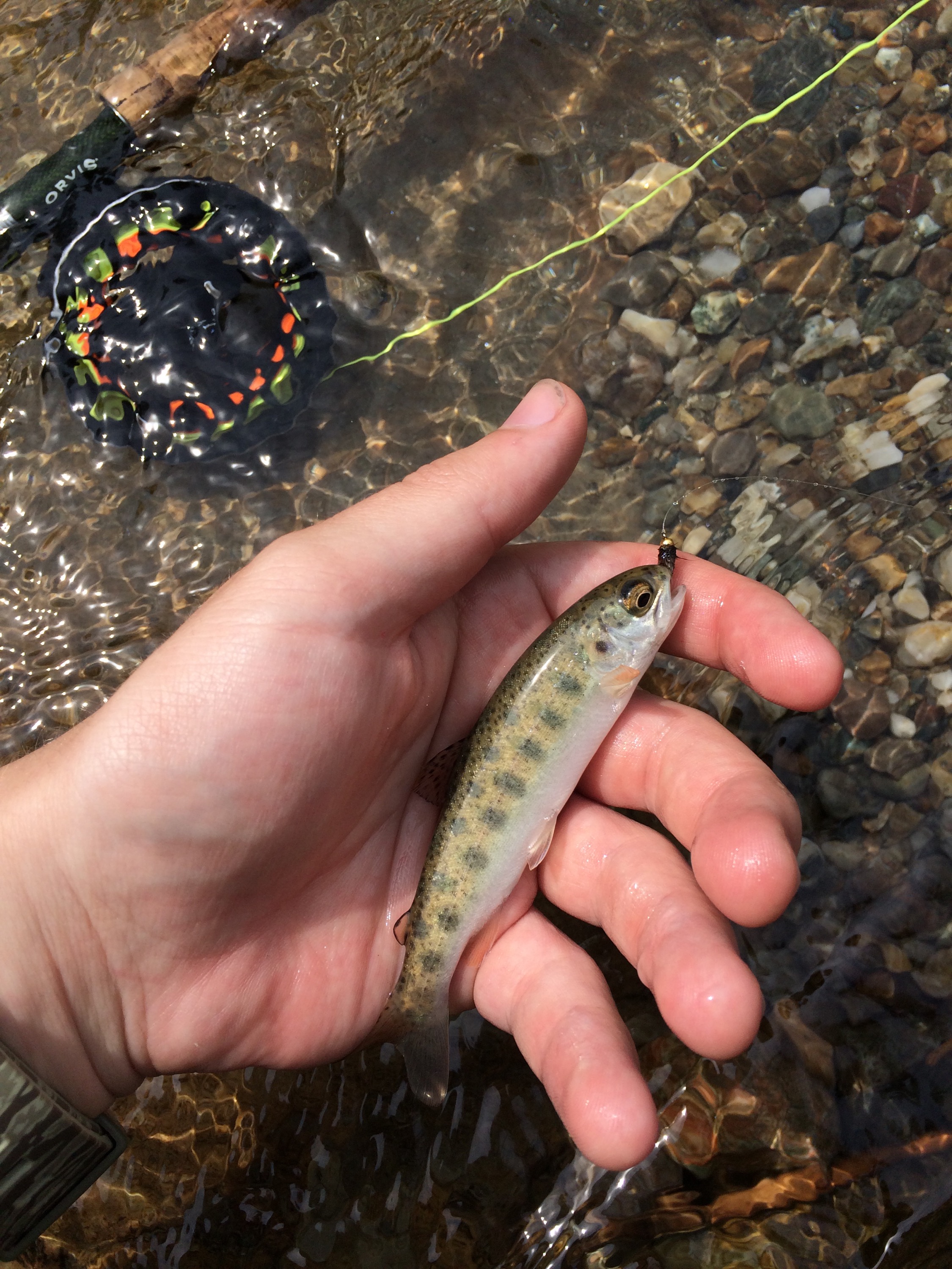 The day was filled with tons of these fish, all varying in sizes from 8-14″, nothing too large, or worth bragging about. We made our way down the river and scoped out some good runs and pools to fish the following day.