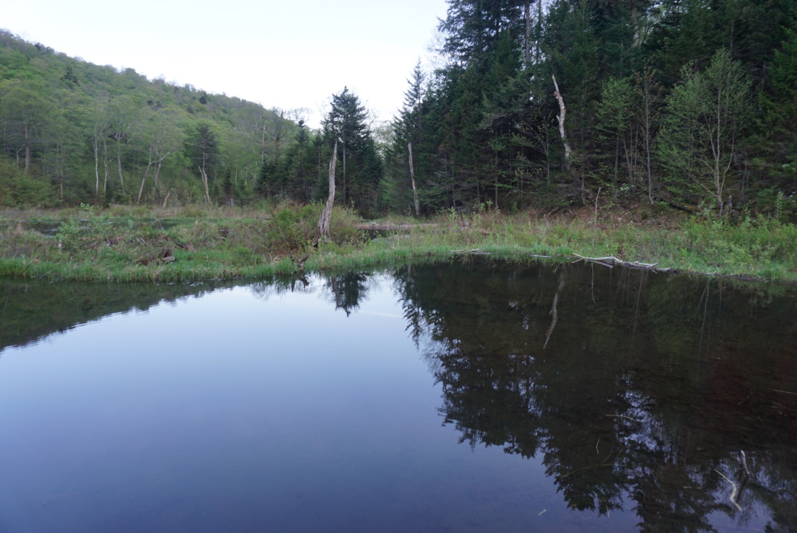 This pool was a spot I kept coming back to throughout the day. It produced quite a few fish over 14″ inches. Unfortunately for me, I didn’t have my camera handy for every fish that I had caught. Midway through the day, I was sending my nymph rig along the bank about 20 feet upstream from where I was casting. I watched as my indication submarined beneath the surface. With a quick hookset I could feel that a sizeable fish was on the other end of my line. A female brook trout pushing 20″ was making a run down stream. The battle was pretty intense, she ran me quite a ways down stream, under logs, around rocks, before she finally came to the net. When she did, boy was I happy. A beautiful trout, and my highlight of the day: